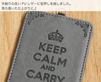 KEEP CALM AND CARRY ON パスケース 型押し加工 PUレザー 通勤 通学 ICカードケース 電子マネー ICOCA Suica メッセージ 雑貨 黒 ネイビー レディース メンズ ピンク 白 シンプル ファッション